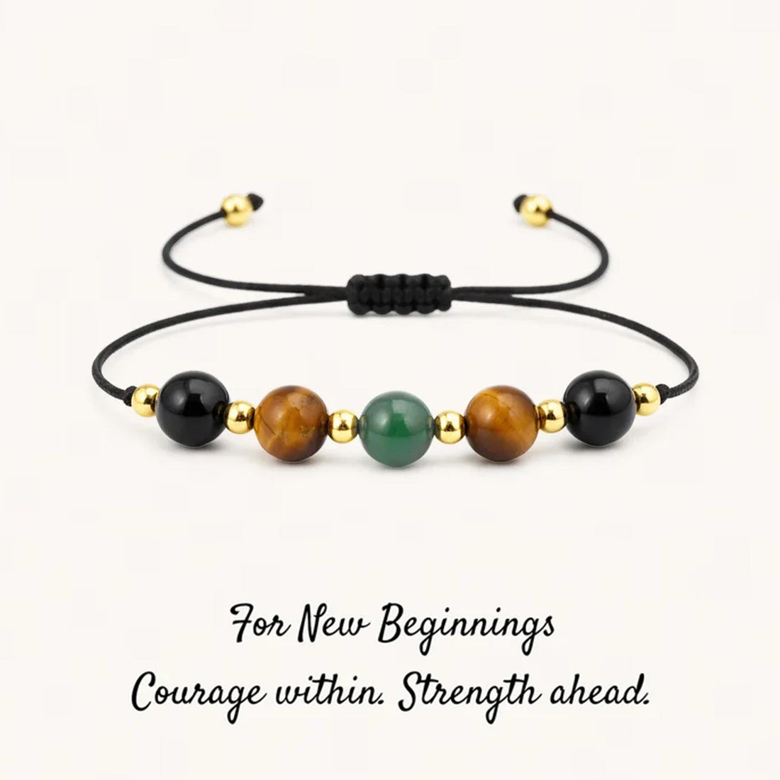 This Courage & Strength Crystal Bracelet features Black Tourmaline, Tiger Eye, and Moss Agate stones,...