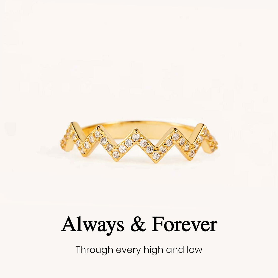 DESCRIPTION This zigzag ring beautifully symbolizes the highs and lows in life. Adorned with the...