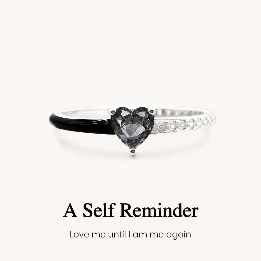 Love Me Until I'm Me Again Black Heart-Cut Half Enamel Ring