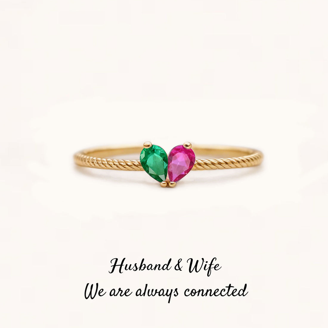 Husband & Wife Tiny Heart Birthstone Ring