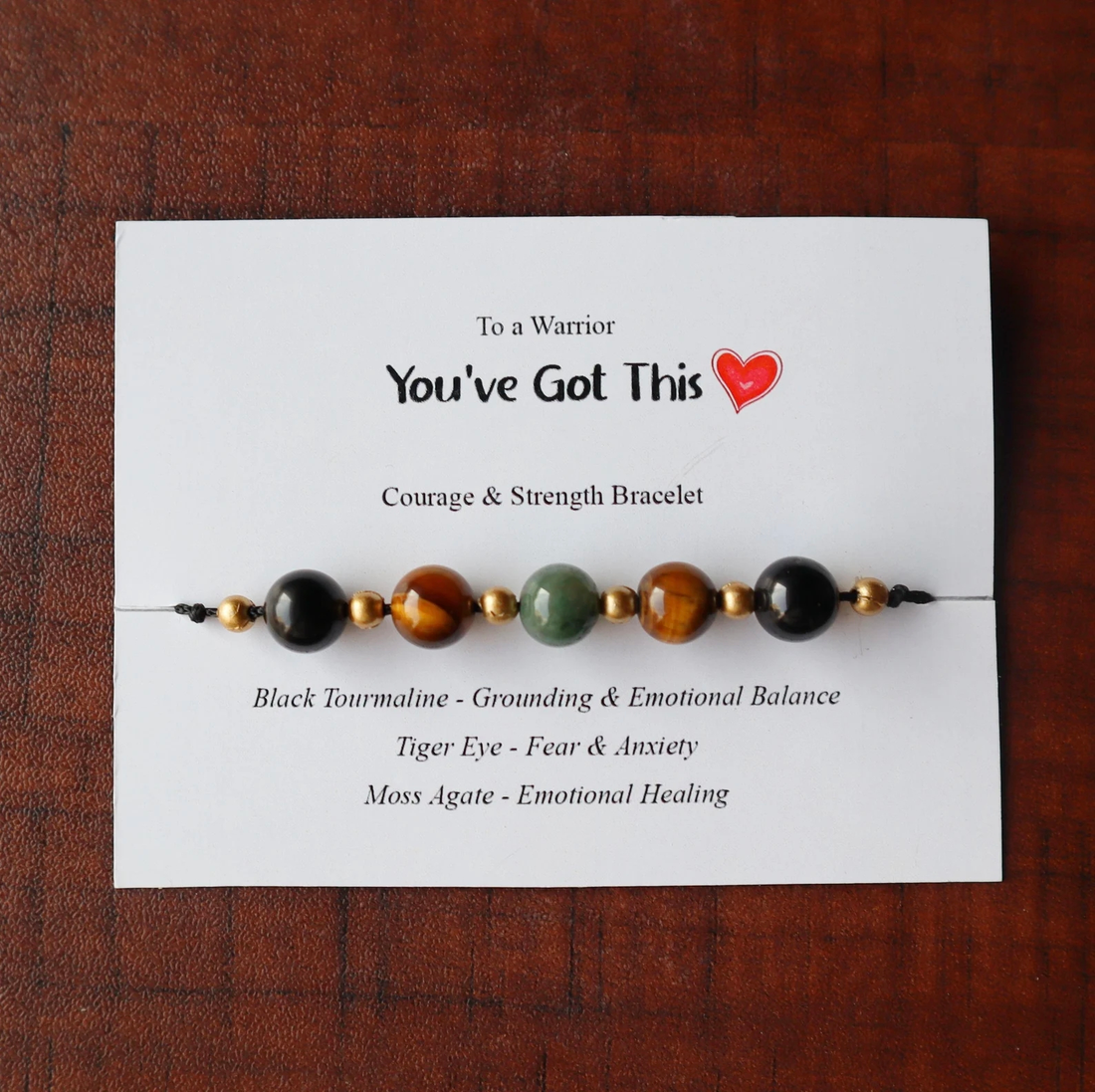 This Courage & Strength Crystal Bracelet features Black Tourmaline, Tiger Eye, and Moss Agate stones,...