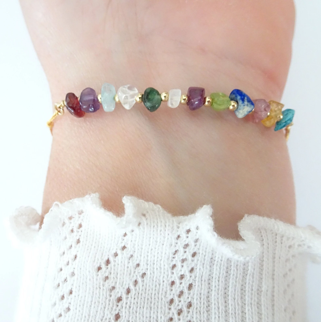 This customizable bracelet features natural birthstone gemstones, that represent the birthstones of your loved ones, letting...