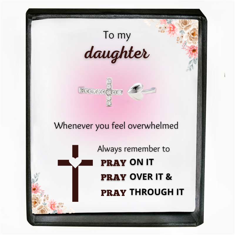 Pray On It CROSS & HEART ADJUSTABLE RING-S925