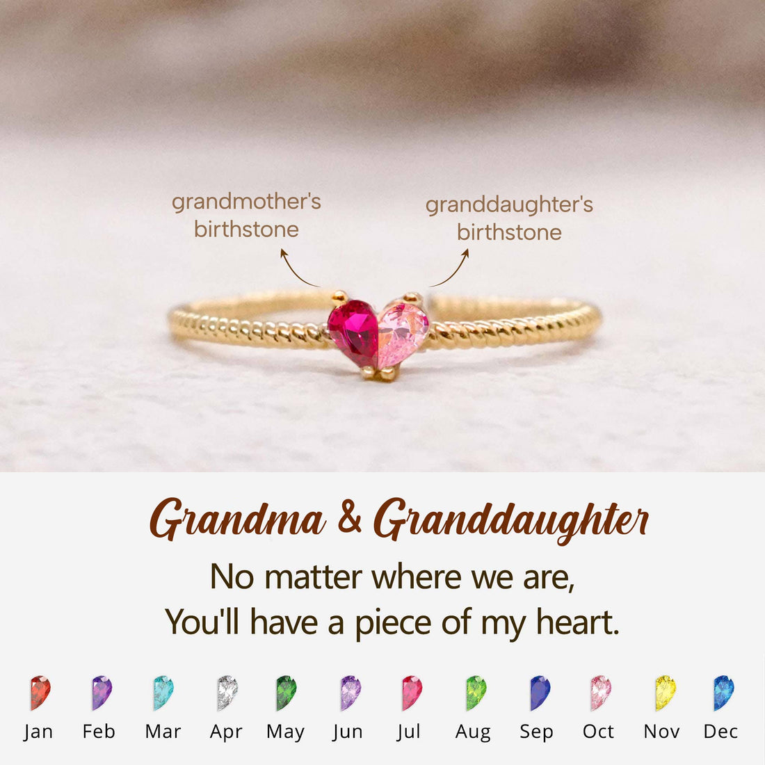 Custom Grandma & Granddaughter Tiny Heart Birthstone Ring