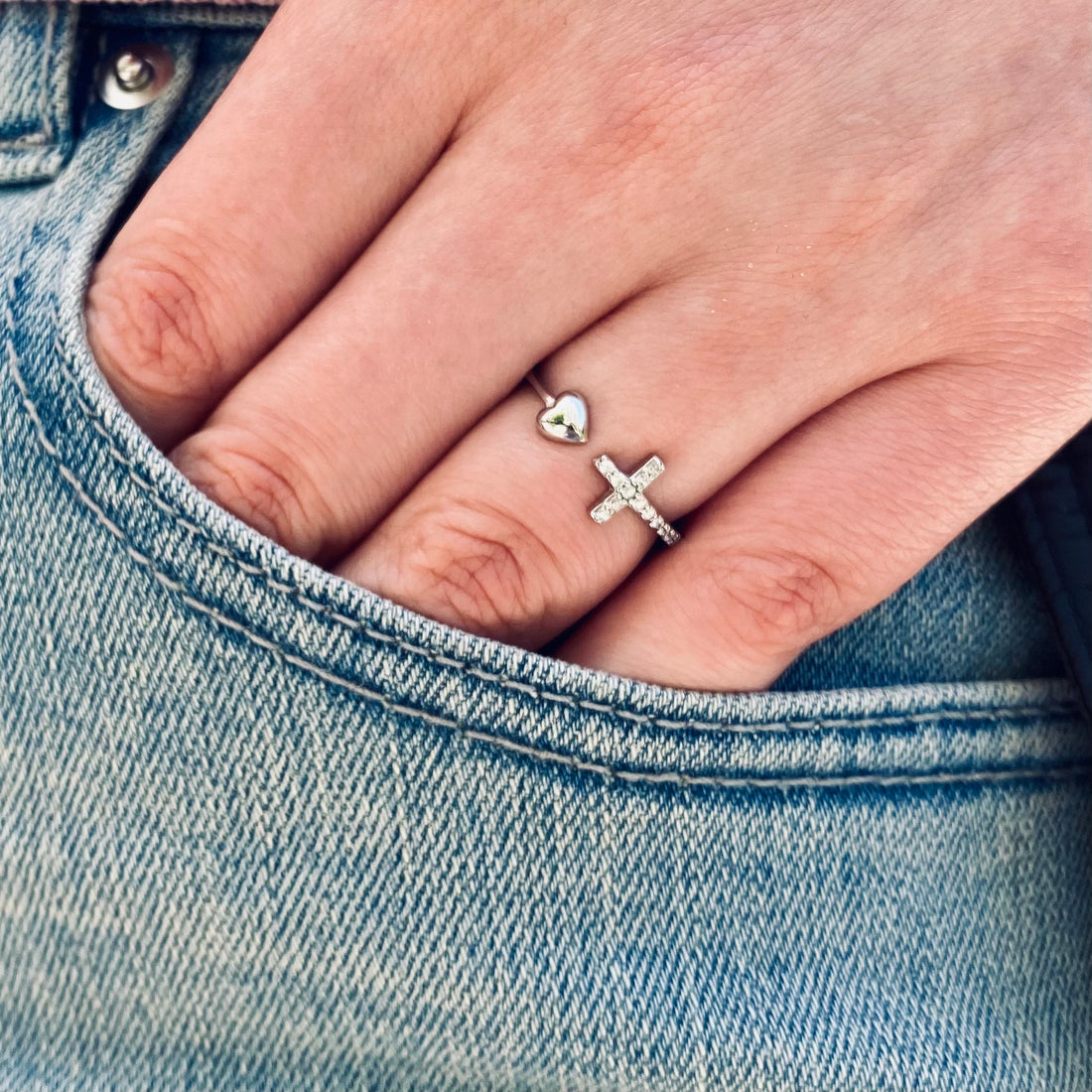 Pray On It CROSS & HEART ADJUSTABLE RING-S925