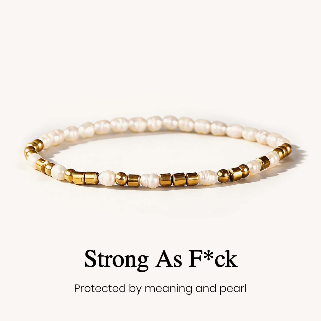 " Strong as Fuck " Pearl Morse Code Bracelet