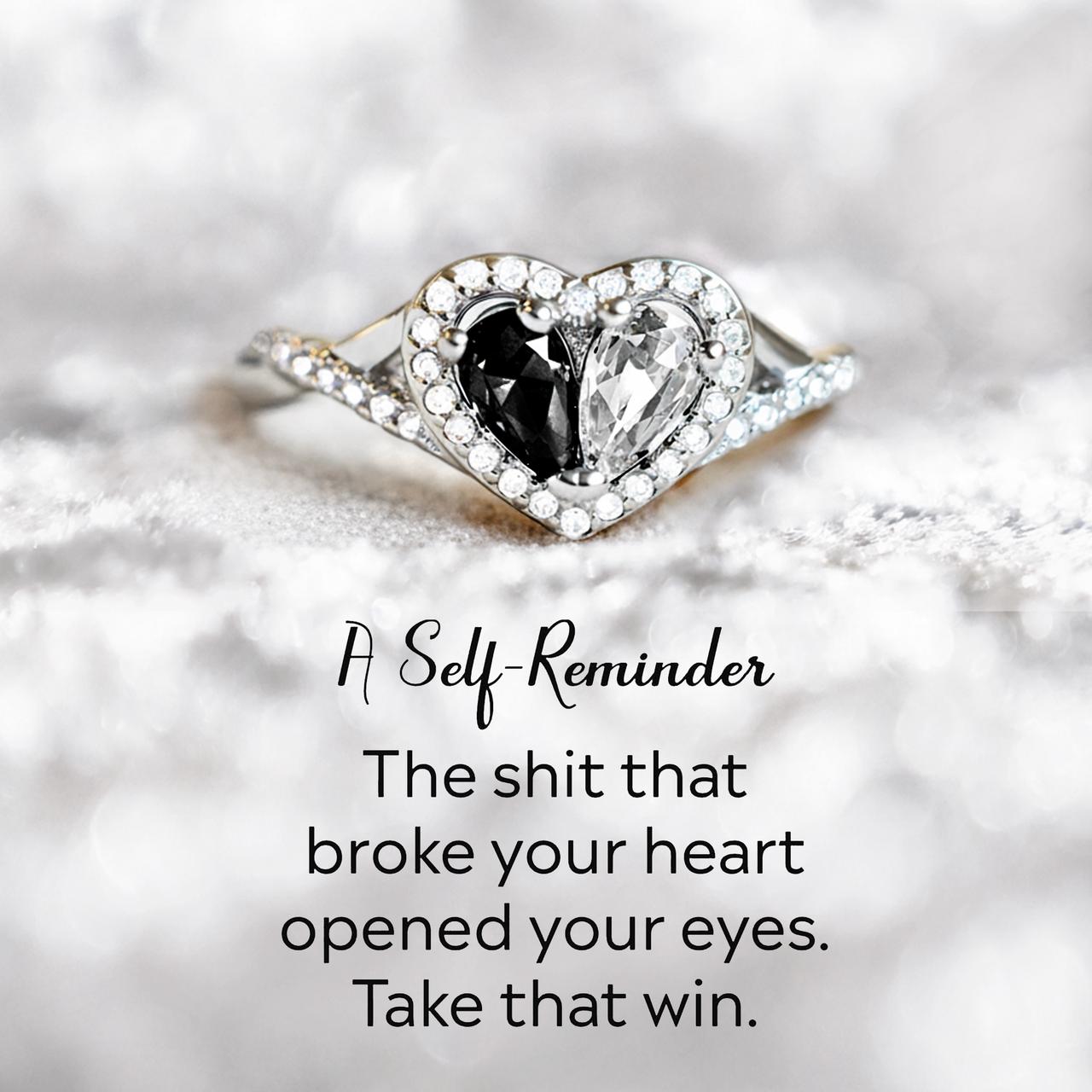 Stay motivated with this Black & Clear Heart Ring . It's an inspiring accessory to wear, perfect for reminding you to have a positive outlook on life.