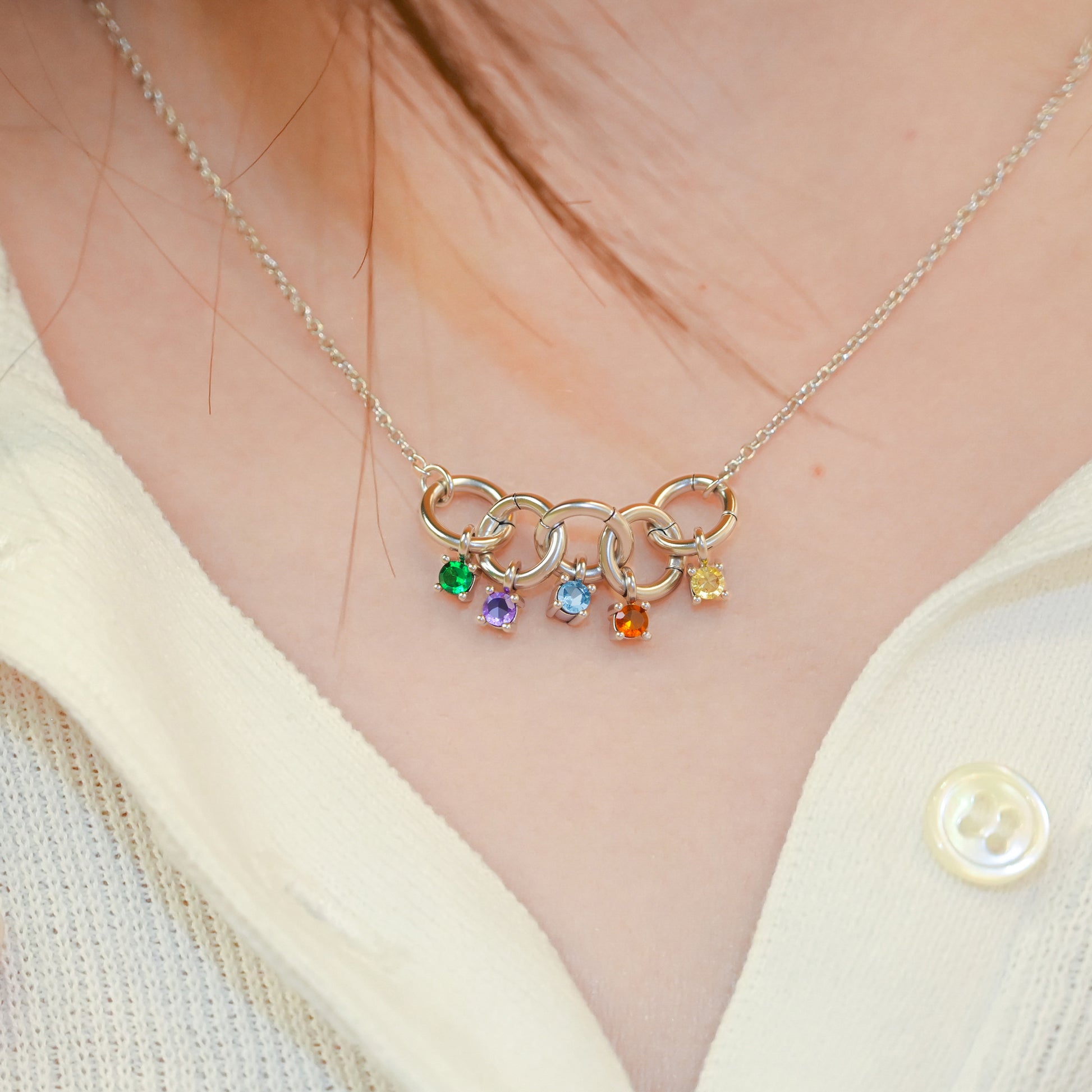 Celebrate the unbreakable bond of family with the Custom Birthstone Family Circle Necklace. You are able to customize this meaningful up to 8 birthstones on the chain.Designed to keep your loved ones close, this necklace features personalized birthstones representing each family member. Whether near or far, let this elegant piece be a daily reminder that family connections transcend distance, offering comfort and support wherever you go.