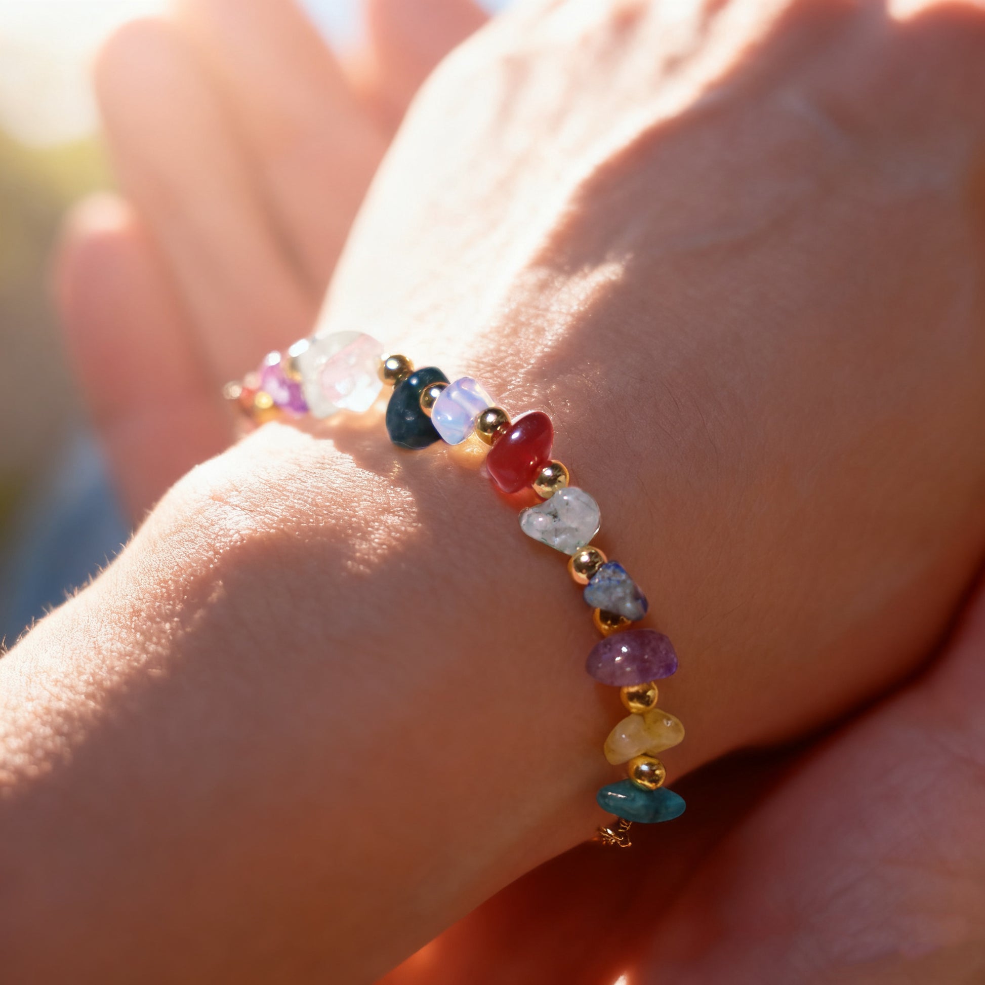 This customizable bracelet features natural birthstone gemstones, that represent the birthstones of your loved ones, letting you celebrate your loved ones in a meaningful way. Perfect as a personal keepsake or a thoughtful gift.