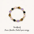 Wear intention on your finger with this beautifully crafted stretch ring featuring four powerful gemstones: grounding black tourmaline, loving rose quartz, confident tiger's eye, and calming amethyst. Each bead is thoughtfully selected and strung together to create a unique, wearable reminder of your inner strength. Finished with your choice of 14kt gold filled or sterling silver accents, this flexible design adapts to your finger while bringing natural beauty and meaningful energy to your day.