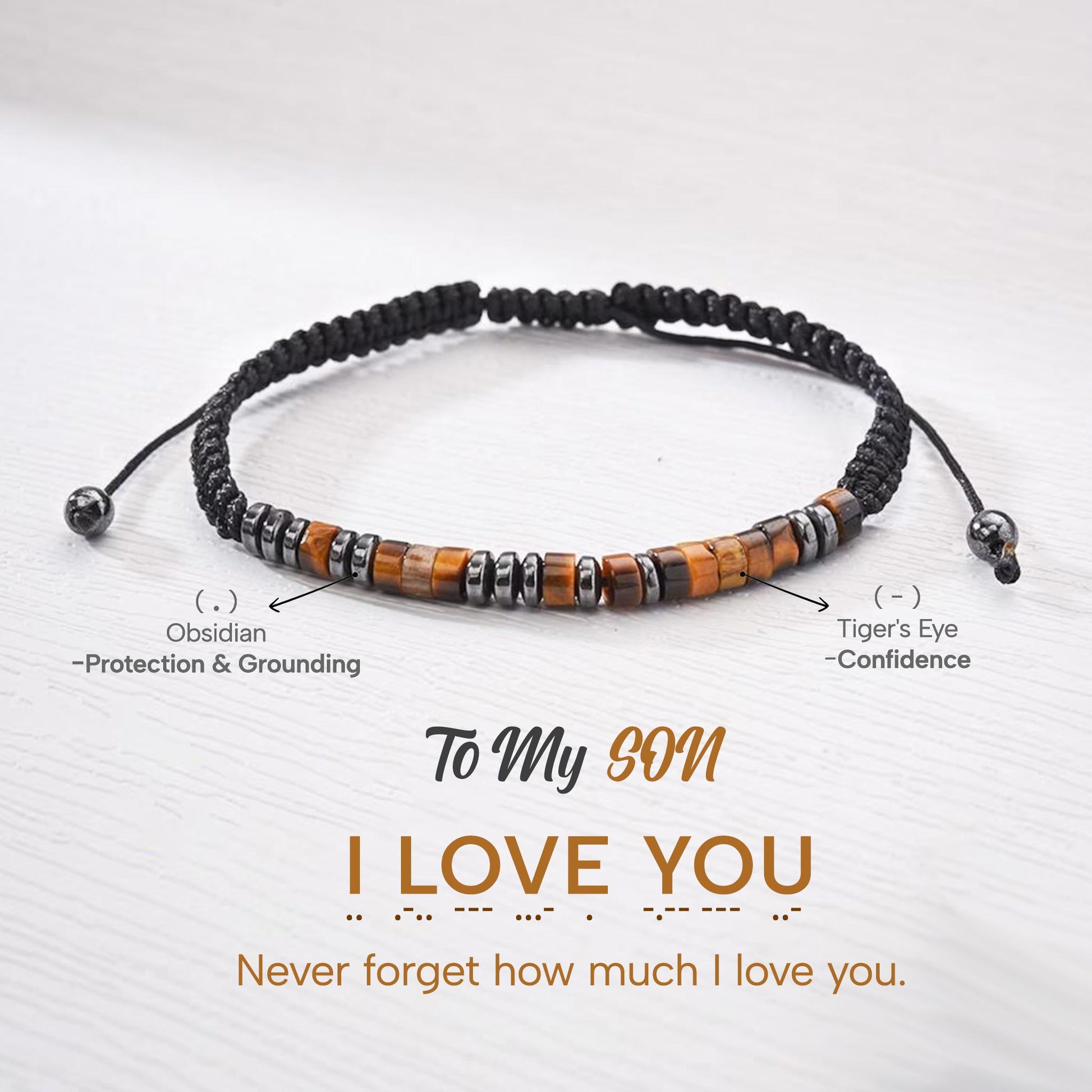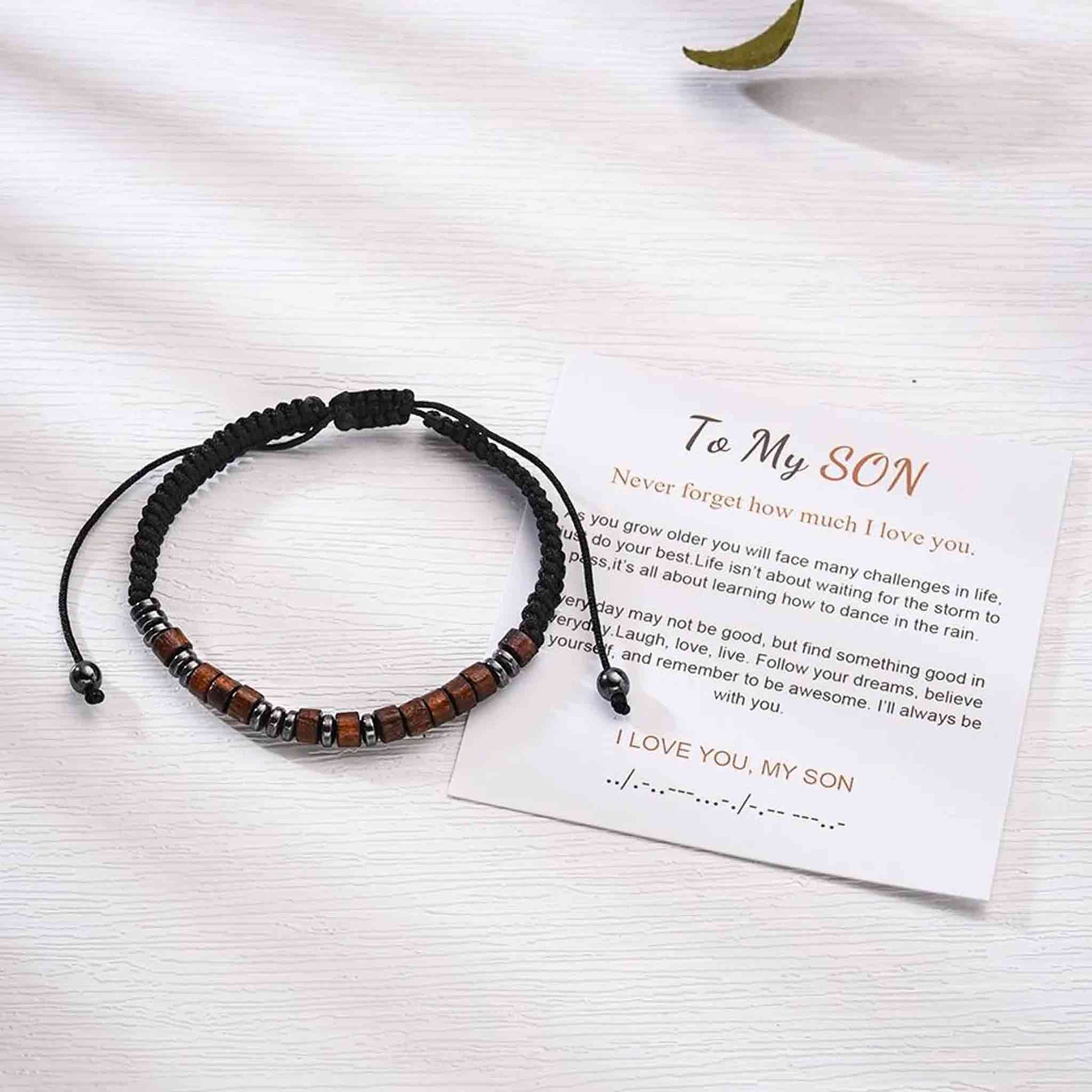 Express your deepest affection with this meaningful morse code bracelet. Each bead represents the dots and dashes spelling "I Love U," creating a wearable message of unconditional love for your son. Perfect for strengthening your bond, this bracelet serves as a daily reminder of your connection. Whether worn as a personal keepsake or gifted to celebrate a special milestone, it combines sentimental value with elegant simplicity. A timeless piece that transforms a universal sentiment into something uniquely personal and treasured.