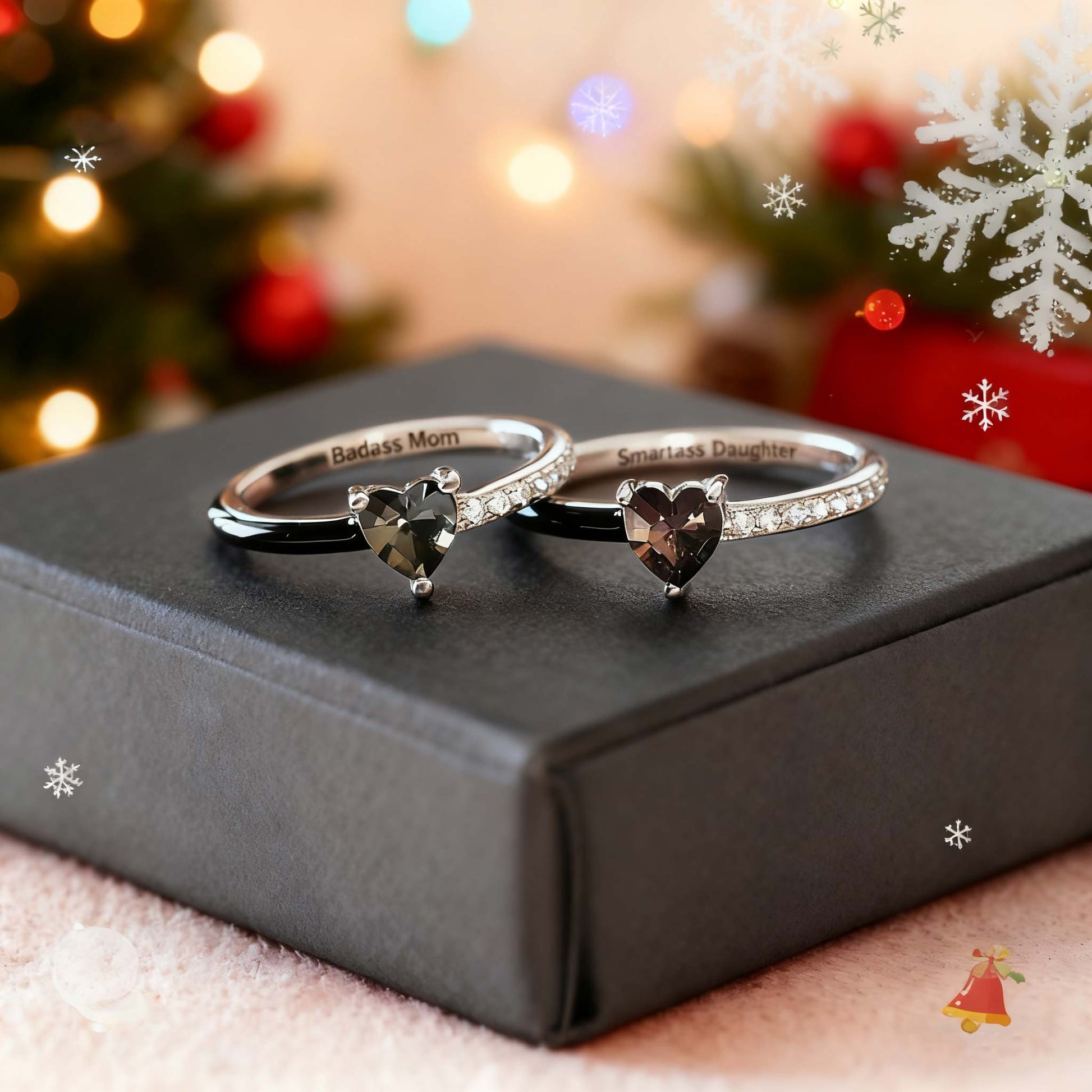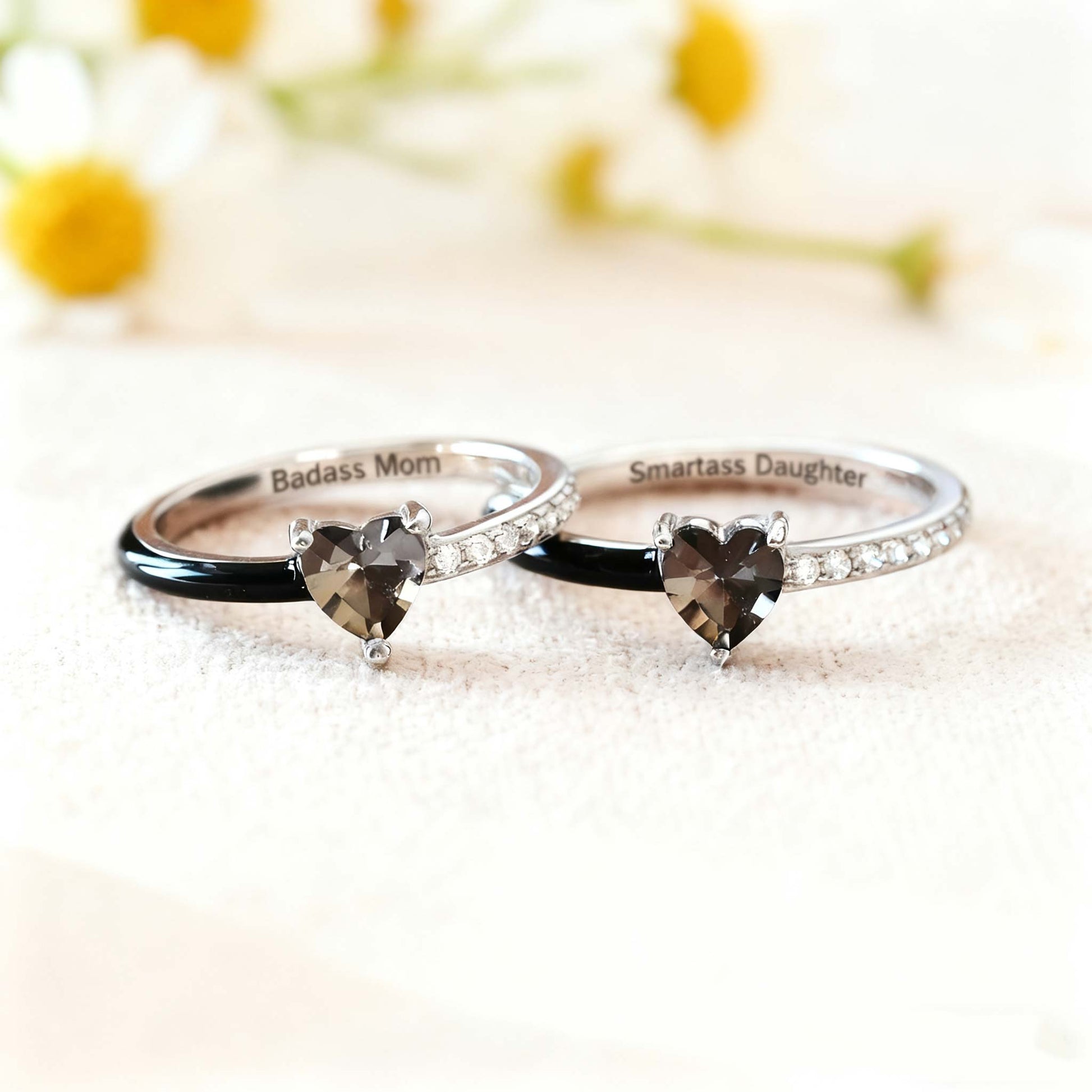 Like Mother Like Daughter Matching Black Enamel Heart Rings