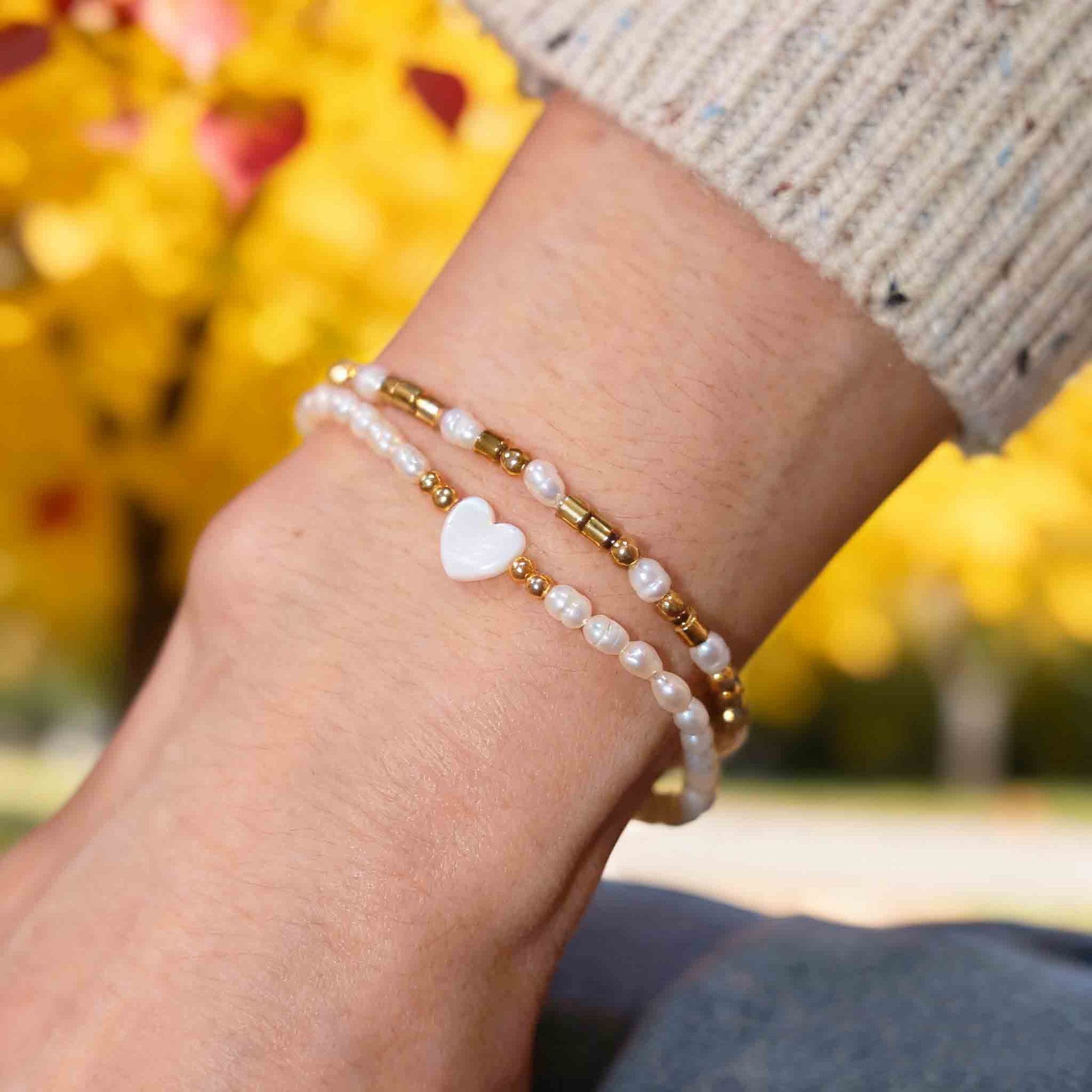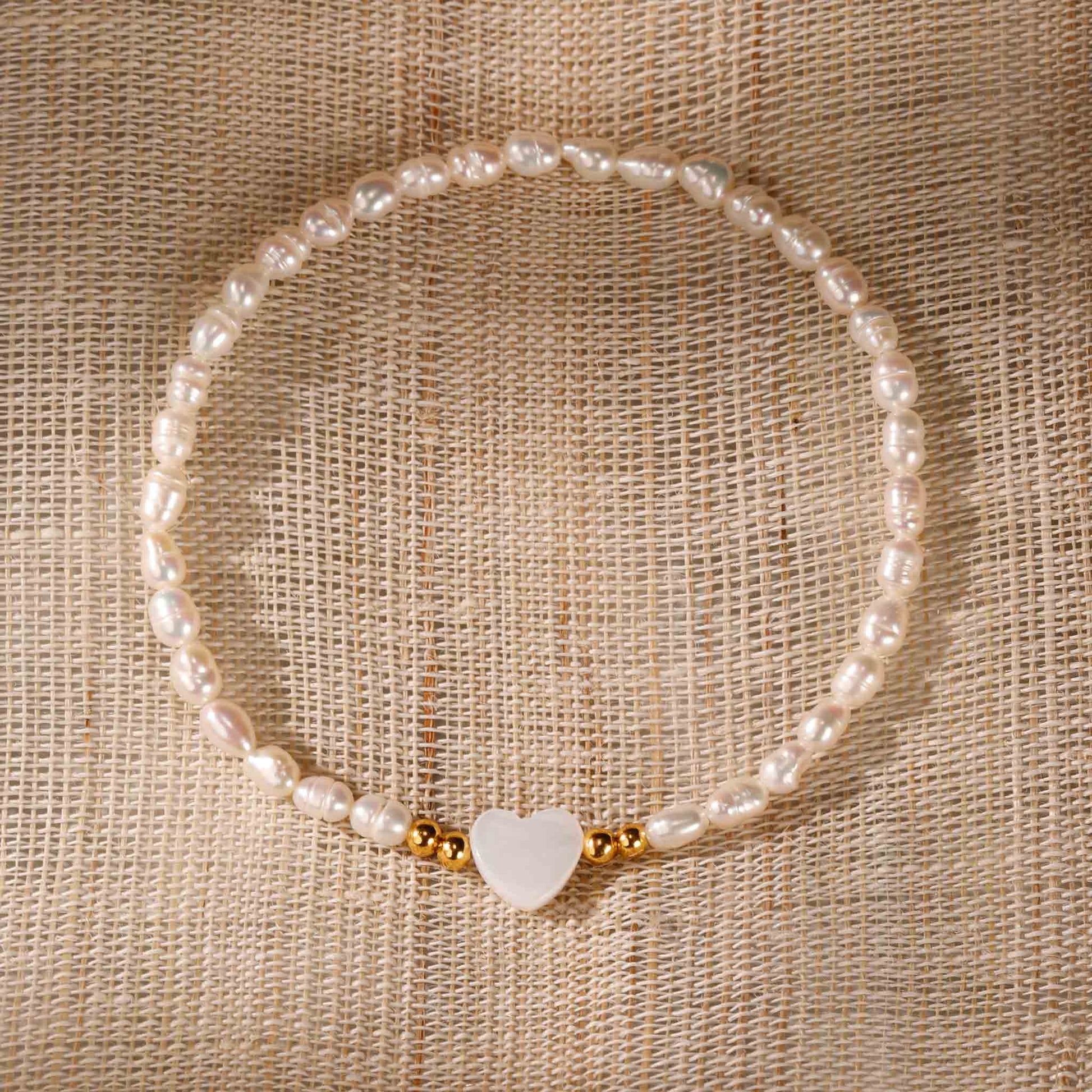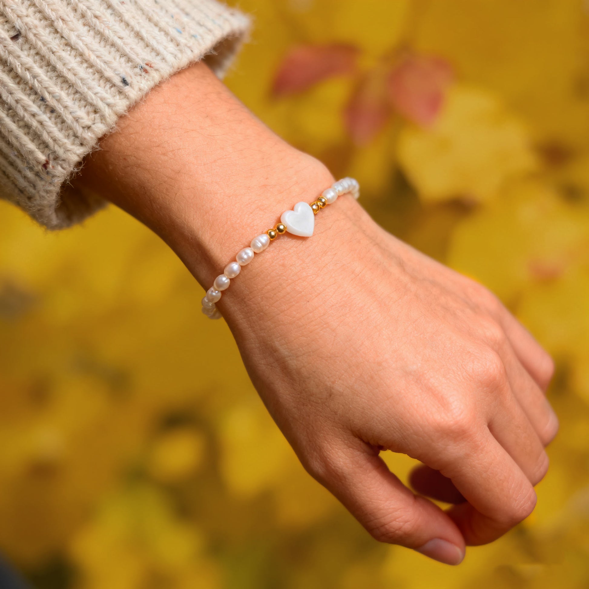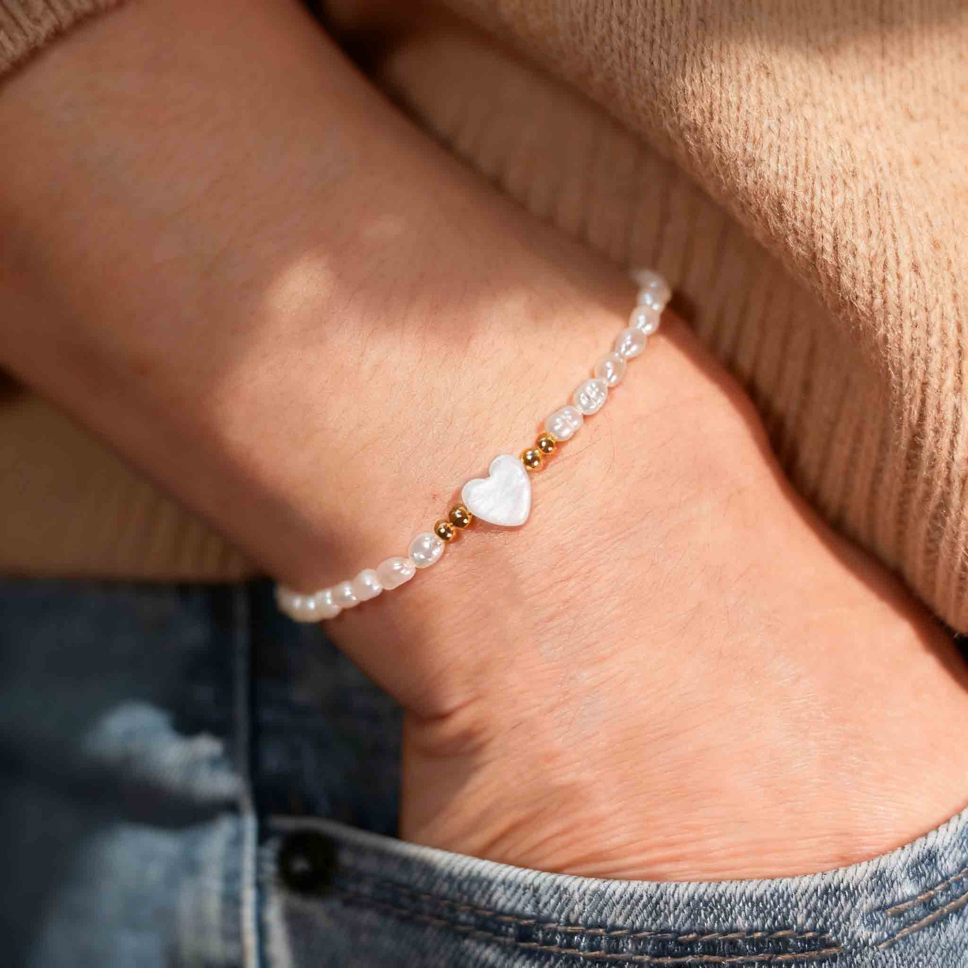 Embrace timeless elegance with this Pearl Love Heart Bracelet, a delicate piece that celebrates affection and grace. Crafted with lustrous pearls and a charming heart motif, this bracelet brings a touch of romance to any occasion. Whether you're treating yourself or gifting someone special, this versatile accessory pairs beautifully with everyday wear or formal attire. The gentle shimmer of pearls combined with the symbolic heart design creates a meaningful piece that speaks to the heart. Perfect for those who appreciate classic beauty with a sentimental touch.