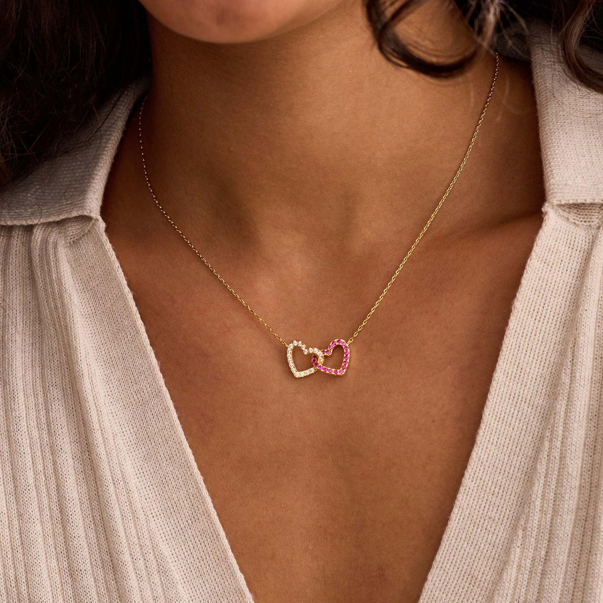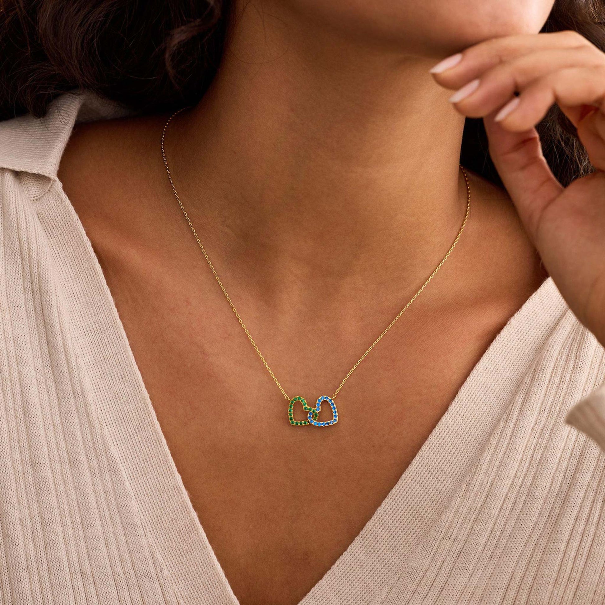 Personalized Interlocking Heart Birthstone Necklace