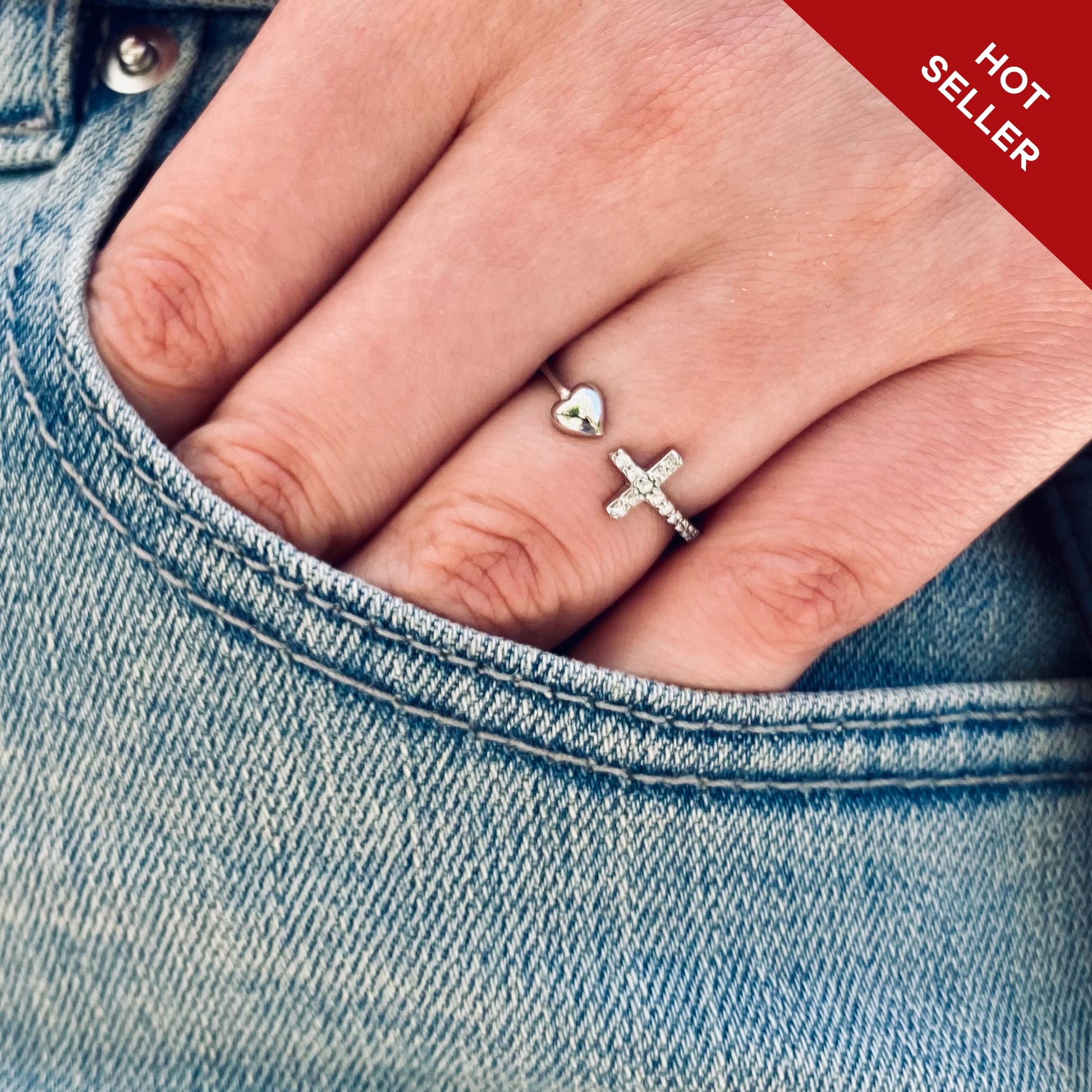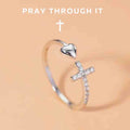 Pray Through It Cross & Heart Adjustable Ring