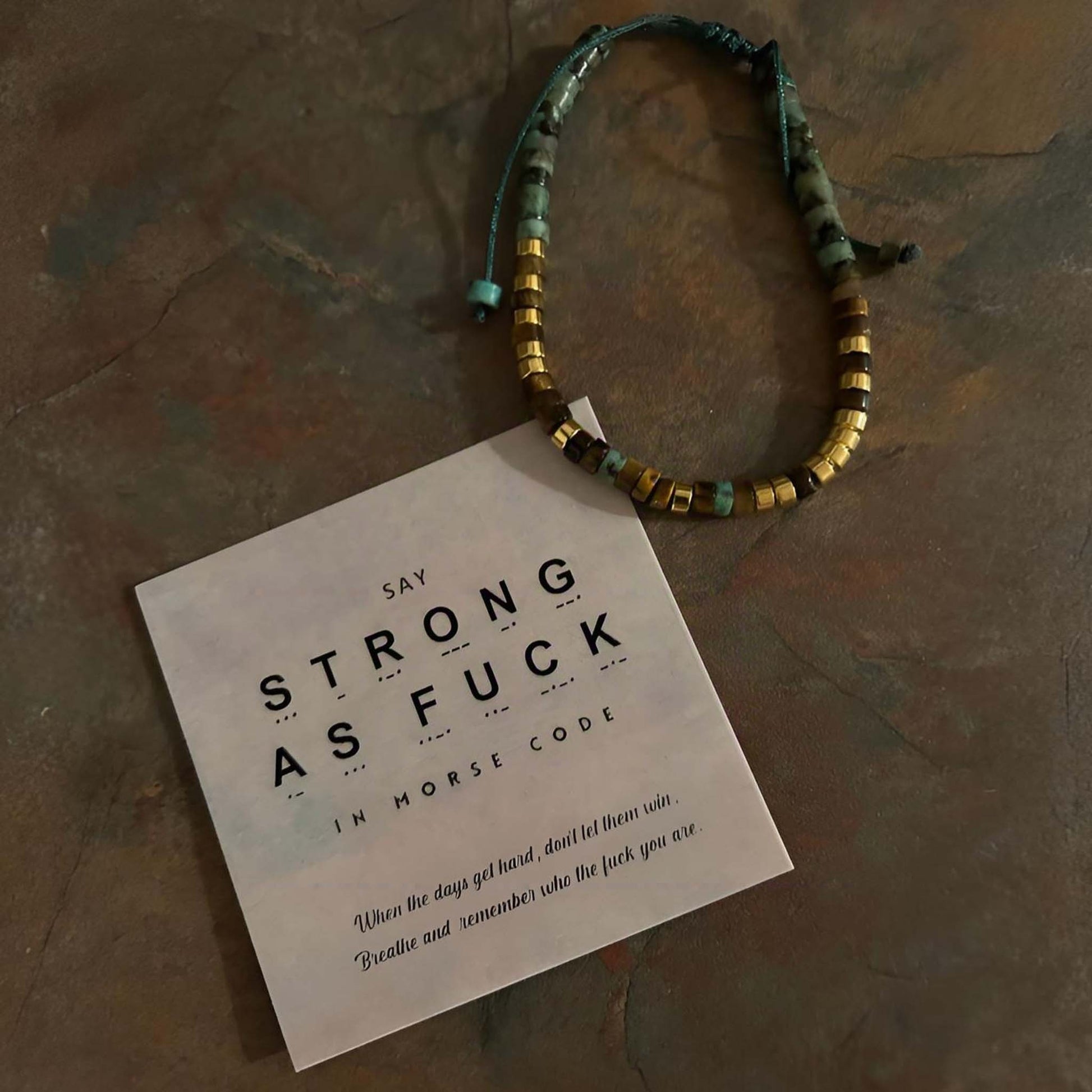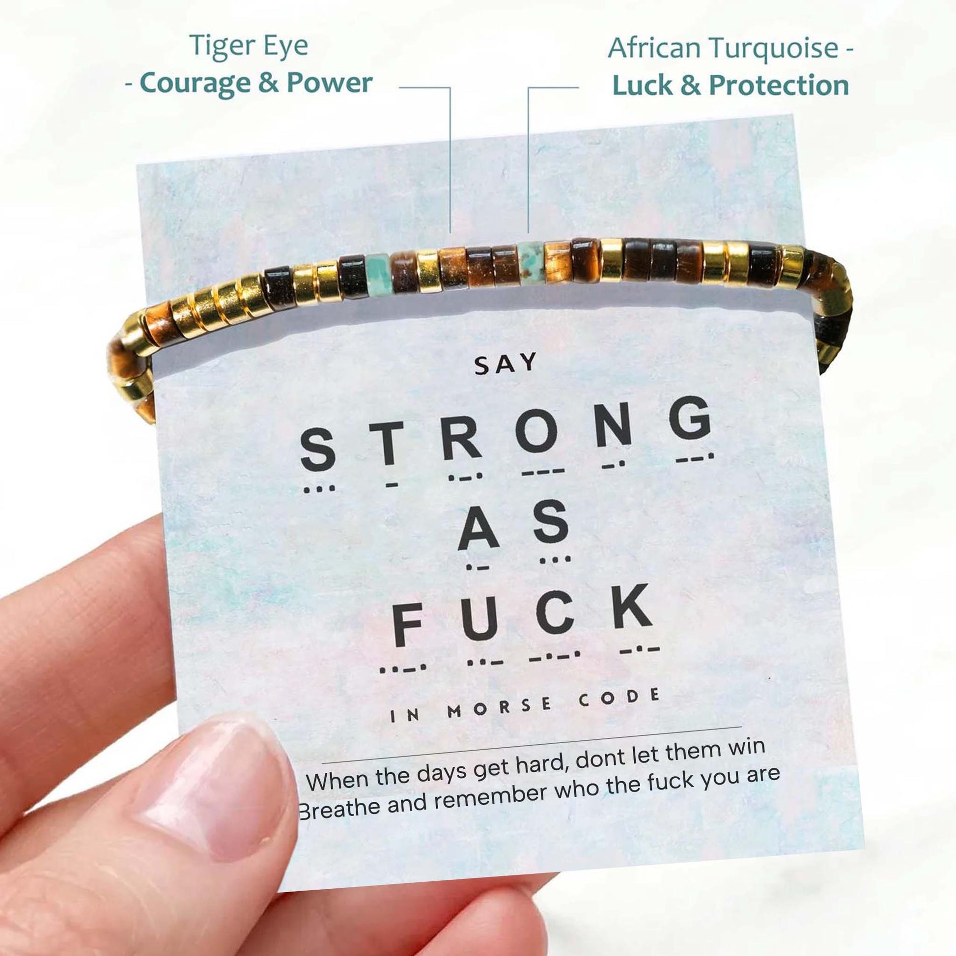 'Strong As Fuck' Morse code Motivational Bracelet with African Turquoise Tiger eye