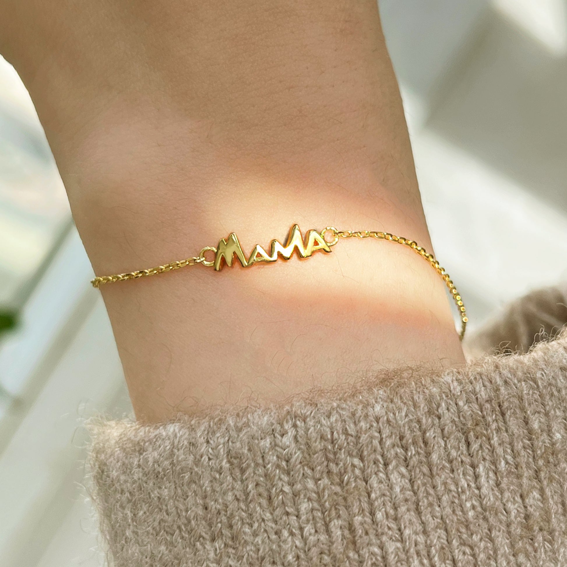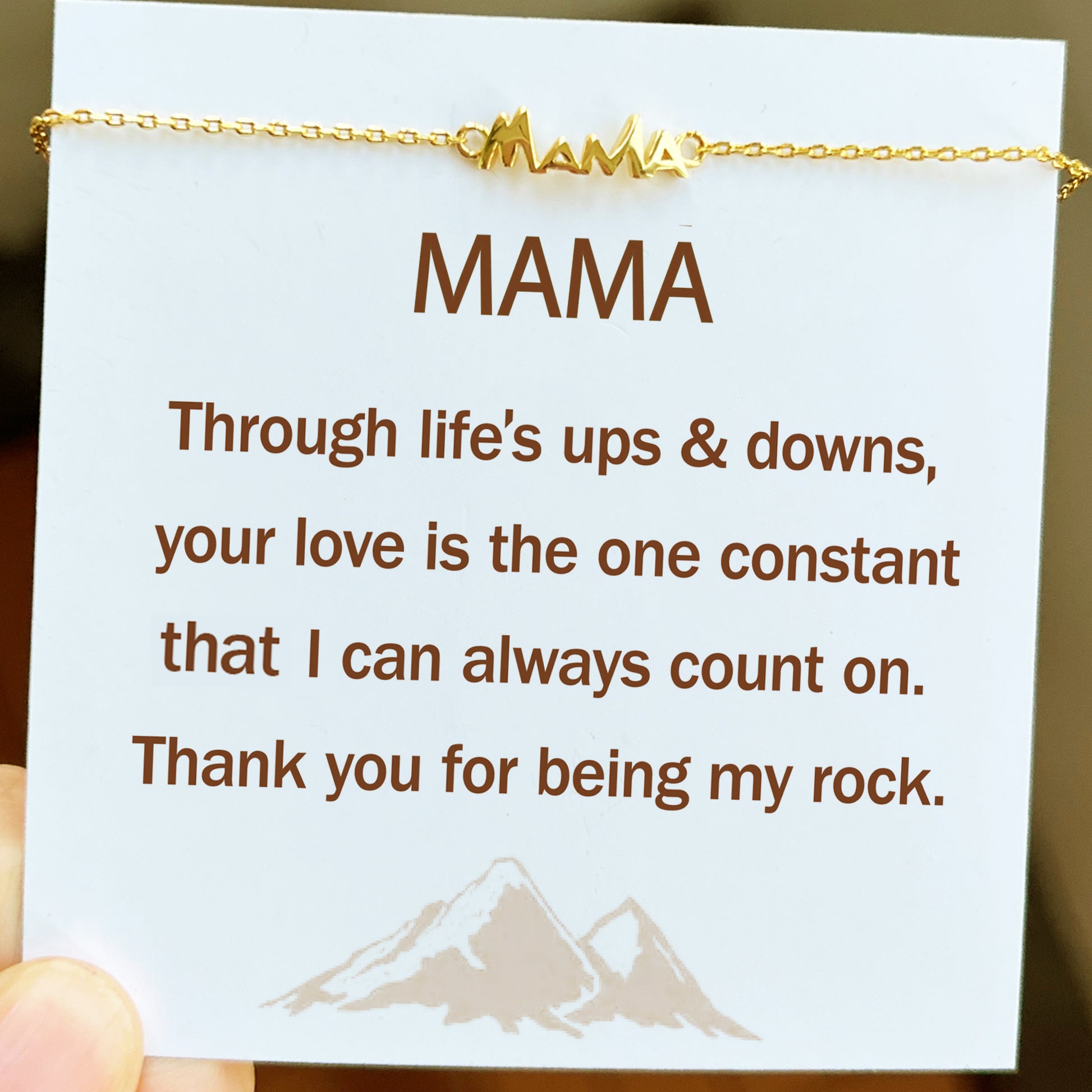 This MAMA Mountain Bracelet, inspired by the majestic shape of a mountain. Crafted with love and care, it's a sweet and thoughtful token of appreciation for the endless love and support that moms provide.